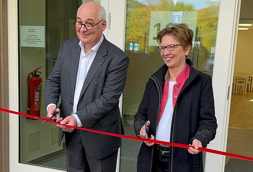 Senatsweinlese 2025: Senatorin Claudia Schilling (3 v.re.) und Ratskellermeister Frederik Janus (l.) mit einem Team von Martinshof und Ratskeller. Foto: Senatspressestelle